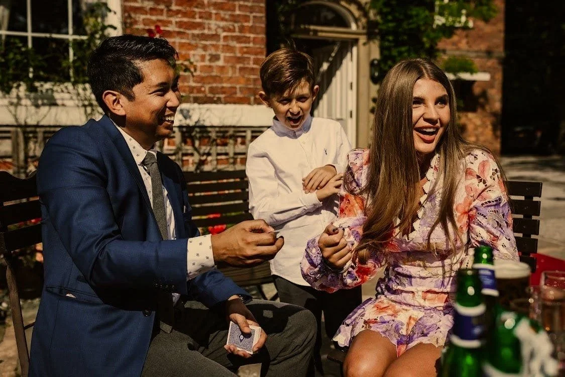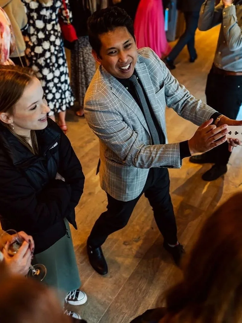 Your wedding deserves more than polite applause—it deserves gasps, giggles, and moments that become legendary. As the North West Wedding Magician, Chris Manucal blends sleight-of-hand with storytelling, some cheeky charm with chaos, and just enough elegance and mischief to keep your guests wondering if they’ve had one too many.